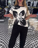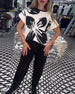 SPECIFIKATIONER Top type: T-shirt Stil: Afslappet Materiale: Bomuldsblanding Lejlighed: Daglig Halsudskæring: Rund hals Mønstertype: Tryk Ærmetype: Almindeligt ærme Ærmelængde: Kortærmet Pasform: Almindelig Sæson/årstid: Forår, Sommer Pakken inkluderer: T-shirt STØRRELSESTABEL (cm) Størrelse Buste Længde S 95 65 M 100 66.5 L 105 6...