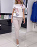 SPECIFIKATIONER Top type: T-shirt Stil: Afslappet Materiale: Bomuldsblanding Lejlighed: Daglig Halsudskæring: Rund hals Mønstertype: Tryk Ærmetype: Almindeligt ærme Ærmelængde: Trekvartærmet Pasform: Almindelig Sæson/årstid: Forår,Sommer Detaljer: Uregelmæssig Pakken inkluderer: 1 x T-shirt STØRRELSESTABEL (cm) Størrelse Buste Længde S 97 ...