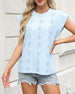 SPECIFIKATIONER Top type: T-shirt Stil: Afslappet Materiale: Bomuldsblanding Lejlighed: Daglig Halsudskæring: Rund hals Mønstertype: Ensfarvet Ærmetype: Raglan ærme Ærmelængde: Kortærmet Pasform: Almindelig Sæson/årstid: Forår,Sommer Detaljer: Patchwork,Knapper,Udhulende Pakken inkluderer: 1 x T-shirt STØRRELSESTABEL (cm) Størrelse Buste Læn...