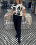 SPECIFIKATIONER Top type: T-shirt Stil: Afslappet Materiale: Bomuldsblanding Lejlighed: Daglig Halsudskæring: V-udskæring Mønstertype: Tryk Ærmetype: Almindeligt ærme Ærmelængde: Kortærmet Pasform: Almindelig Sæson/årstid: Forår,Sommer Pakken inkluderer: 1 x T-shirt STØRRELSESTABEL (cm) Størrelse Buste Længde S 97 65 M 101 66.5 L 105 6...