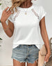 SPECIFIKATIONER Top type: T-shirt Stil: Afslappet Materiale: Bomuldsblanding Lejlighed: Daglig Halsudskæring: V-udskæring Mønstertype: Ensfarvet Ærmetype: Almindeligt ærme Ærmelængde: Kortærmet Pasform: Almindelig Sæson/årstid: Forår,Sommer Detaljer: Udhulende Pakken inkluderer: 1 x T-shirt STØRRELSESTABEL (cm) Størrelse Buste Længde S 97 ...