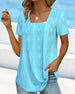 SPECIFIKATIONER Top type: T-shirt Stil: Afslappet Materiale: 95% Polyester, 5% Spandex Lejlighed: Daglig Halsudskæring: Firkantet hals Mønstertype: Ensfarvet Ærmetype: Almindeligt ærme Ærmelængde: Kortærmet Pasform: Almindelig Sæson/årstid: Forår,Sommer Detaljer: Udhulende Pakken inkluderer: 1 x T-shirt STØRRELSESTABEL (cm) Størrelse Læ...