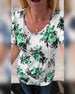 SPECIFIKATIONER Top type: T-shirt Stil: Afslappet Materiale: Bomuldsblanding Lejlighed: Daglig Halsudskæring: V-udskæring Mønstertype: Blomster-(garment type) Ærmetype: Almindeligt ærme Ærmelængde: Kortærmet Pasform: Almindelig Sæson/årstid: Forår, Sommer Pakken inkluderer: T-shirt STØRRELSESTABEL (cm) Størrelse Buste Længde S 95 65 ...
