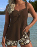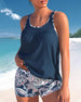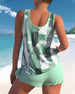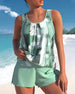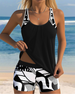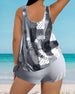 Tankini U-Hals Ærmeløs Trykt Boxer