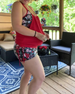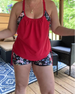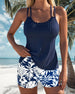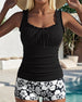 Plisseret tankini med blomsterprintede shorts