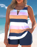 SPECIFIKATIONER Stil: Ferie Materiale: 15% Spandex, 85% Polyester Lejlighed: Ferie Halsudskæring: Rund hals Mønstertype: Stribet Ærmelængde: Uden ærmer Top type: Tankini BH Type: Stropløs BH Underdel type: Shorts Pasform: Skinny Sæson/årstid: Sommer Pakken inkluderer: Tankini STØRRELSESTABEL (cm) Størrelse Buste Talje Hofte Nedre buste ...