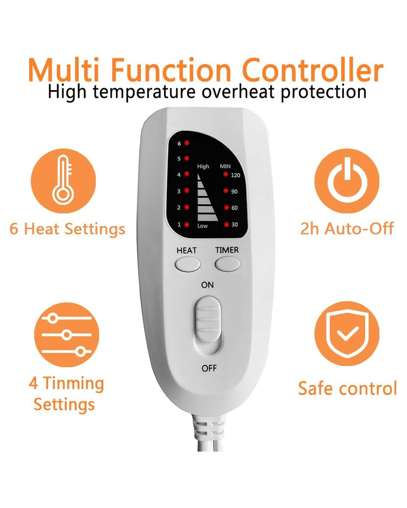 【Automatisk slukning & 6 varmeindstillinger + 4 tidsindstillinger】: Varmepuden til nakke og skuldre tilbyder 6 varmeindstillinger, så du kan vælge en behagelig temperatur (40℃ ~ 60℃), og har 4 tidsindstillinger: 0,5T/1T/1,5T/2T & automatisk slukningsfunktion, der undgår overophedning og energispild. Nedtællingsfunktion for sikrere og mere bekvem brug.