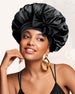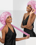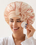 FUNKTIONER "Jeg er vildt begejstret for min nye sovehætte! Stoffet er utroligt blødt og glat, hvilket giver en luksuriøs fornemmelse. Siden jeg begyndte med at bruge den, vågner jeg op med betydeligt mindre krus og ødelagt hår. Den bliver siddende hele natten uden at stramme eller virke ubehagelig." Denne hætte bliver siddende! Vi præs...