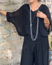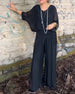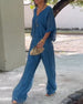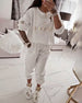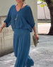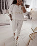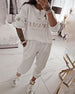 SPECIFIKATIONER Top type: Bluser Stil: Afslappet Materiale: 100% Polyester Lejlighed: Daglig Halsudskæring: V-udskæring Mønstertype: Ensfarvet Ærmetype: Flagermuse-ærmer Ærmelængde: Langærmet Pasform: Løs Sæson/årstid: Forår, Sommer, Efterår Detaljer: Snøre Pakken indeholder: 1 x bluse, 1 x bukser STØRRELSESTABEL (cm) Størrelse...