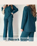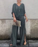 Ensfarvede bukser og bluse med V-udskæring | To-delt sæt
