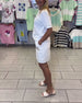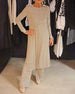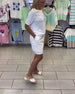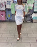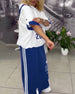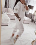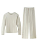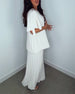 Ribmønstret to-delt sæt | Hvide bukser og bluse