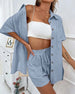 SPECIFIKATIONER Stil: Afslappet Top type: Skjorte Kategori: Sæt Materiale: Bomuldsblanding Mønstertype: Ensfarvet Halsudskæring: Revers Ærmetype: Almindeligt ærme Ærmelængde: Kortærmet Buksetype: Konventionel Bukselængde: Kort Taljetype: Mellem talje Pasform: Almindelig Sæson/årstid: Sommer Detaljer: Lomme,Snøre op,Knapper Lejlighed: Daglig P...