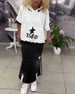 SPECIFIKATIONER Stil: Afslappet Top type: T-shirt Kategori: Sæt Materiale: Bomuldsblanding Mønstertype: Tryk Halsudskæring: Rund hals Ærmetype: Almindeligt ærme Ærmelængde: Kortærmet Pasform: Almindelig Sæson/årstid: Forår,Sommer Detaljer: Lomme Lejlighed: Daglig Pakken inkluderer: 1 x T-shirt, 1 x Skørt STØRRELSESTABEL (cm) Størrelse...