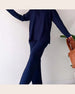 Ensfarvet to-delt sæt | Bluse med sløjfe og bukser