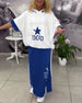 SPECIFIKATIONER Stil: Afslappet Top type: Bluser Kategori: Sæt Materiale: Bomuldsblanding Mønstertype: Bogstav Halsudskæring: Rund hals Ærmetype: Almindeligt ærme Ærmelængde: Kortærmet Pasform: Almindelig Sæson/årstid: Forår,Sommer Detaljer: Lomme Lejlighed: Daglig Pakken inkluderer: 1 x Bluse, 1 x Skørt STØRRELSESTABEL (cm) Størrelse B...