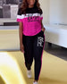SPECIFIKATIONER Stil: Afslappet Top type: Bluser Kategori: Sæt Materiale: Bomuldsblanding Mønstertype: Farveblok Halsudskæring: V-udskæring Ærmetype: Almindeligt ærme Ærmelængde: Kortærmet Buksetype: Konventionel Bukselængde: Lang Taljetype: Mellem talje Pasform: Almindelig Sæson/årstid: Forår,Sommer Lejlighed: Daglig Pakken inkluderer: 1 x Bl...