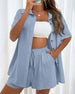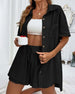 Casual ensfarvet to-delt sæt | skjorte og shorts
