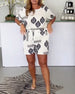 SPECIFIKATIONER Stil: Afslappet Top type: Toppe Kategori: Sæt Materiale: Bomuldsblanding Mønstertype: Farveblok,Tryk Halsudskæring: Revers Ærmetype: Almindeligt ærme Ærmelængde: Halve ærmer Pasform: Almindelig Sæson/årstid: Forår,Sommer Detaljer: Lomme,Snøre Lejlighed: Daglig Pakken inkluderer: 1 x Top, 1 x Skørt STØRRELSESTABEL (cm) Stø...