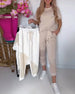 Størrelsesskema Størrelse Bryst Toppens længde Talje Buksens længde S 70 63 58 103 M 74 64 62 104 L 78 65 66 105 EGENSKABERSlim Fit-design – Dette sæt er designet til at fremhæve dine naturlige former og samtidig give komfort. Den slanke pasform skaber en elegant og velpoleret silhuet uden at begrænse bevægelsen, hvilket gør ...