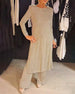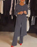 Tredelt sæt | Top med tværgående design, hvid skjorte og grå bukser