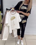 SPECIFIKATIONER Stil: Afslappet Top type: T-shirt Kategori: Sæt Materiale: Bomuldsblanding Mønstertype: Tryk Halsudskæring: Rund hals Ærmetype: Almindeligt ærme Buksetype: Konventionel Bukselængde: Lang Taljetype: Mellem talje Pasform: Almindelig Sæson/årstid: Forår,Sommer Detaljer: Patchwork,Lomme,Snøre op Lejlighed: Daglig Pakken inkluderer:...