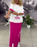 SPECIFIKATIONER Stil: Afslappet Top type: Sweatshirts Kategori: Sæt Materiale: Bomuldsblanding Mønstertype: Hjerte Halsudskæring: Rund hals Ærmetype: Drop Shoulder Ærmelængde: Langærmet Buksetype: Konventionel Bukselængde: Lang Taljetype: Mellem talje Pasform: Almindelig Sæson/årstid: Forår,Efterår Detaljer: Lomme Lejlighed: Daglig Pakken inkl...