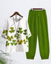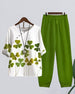 SPECIFIKATIONER Stil: Afslappet Top type: Bluser Kategori: Sæt Materiale: Bomuldsblanding Mønstertype: Tryk Halsudskæring: Rund hals Ærmelængde: Halve ærmer Buksetype: Lanterne Bukselængde: Lang Taljetype: Mellem talje Pasform: Almindelig Sæson/årstid: Forår,Sommer Detaljer: Lomme Lejlighed: Daglig Pakken inkluderer: 1 x Bluse, 1 x Bukser STØR...