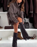 SPECIFIKATIONER Stil: Chic Top type: Sweatre Kjoletype: Tank Kategori: Sæt Materiale: Akryl,Polyester Mønstertype: Ensfarvet Halsudskæring: Skrå Krave Ærmetype: Almindeligt ærme Ærmelængde: Langærmet Kjolelængde: Knælængde Pasform: Almindelig Sæson/årstid: Efterår,Vinter Detaljer: Pjusket,Snøre Lejlighed: Daglig Pakken inkluderer: 1 x Sweater...