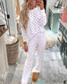 Todelt sæt med afslappet rullekrave og blondeprint