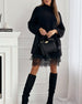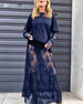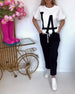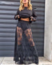 Todelt sæt - Sort top med blondeærmer og blondenederdel
