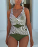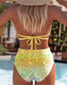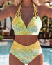 SPECIFIKATIONER Stil: Ferie Materiale: 15% Spandex,85% Polyester Lejlighed: Ferie Mønstertype: Tryk Ærmelængde: Uden ærmer Top type: Bikini BH Type: Trekant Underdel type: Høj talje Pasform: Skinny Pakken inkluderer: 1 x Bikini,1 x Tildækning STØRRELSESTABEL (cm) Størrelse Buste Talje Hofte Nedre buste S 88 73 96 73 M 92 77 100 77 L 96...