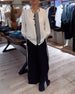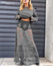 SPECIFIKATIONER Stil: Afslappet Top type: Bluser Kategori: Sæt Materiale: Bomuldsblanding Mønstertype: Tryk Halsudskæring: Rund hals Ærmetype: Lanterneærmet Ærmelængde: Ni-punkts-ærmer Kjolelængde: Maxi Taljetype: Mellem talje Pasform: Almindelig Sæson/årstid: Forår,Sommer Lejlighed: Daglig Pakken inkluderer: 1 x Bluse, 1 x Skørt STØRRELSESTAB...