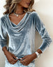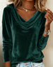 SPECIFIKATIONER Top type: Toppe Stil: Afslappet Materiale:Bomuldsblanding Lejlighed: Daglig Halsudskæring: Draperet Krave Mønstertype: Ensfarvet Ærmetype: Raglan ærme Ærmelængde: Langærmet Pasform: Løs Sæson/årstid: Efterår,Vinter Pakken inkluderer: 1 x Top STØRRELSESTABEL (cm) Størrelse Buste Længde S 92 65 M 96 66.5 L 100 68 X...