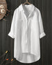 SPECIFIKATIONER Top type: Bluser Stil: Afslappet, Forretning/Business Materiale: Bomuld og hør Lejlighed: Daglig Halsudskæring: Krave Mønstertype: Ensfarvet Ærmetype: Almindeligt ærme Ærmelængde: Langærmet Pasform: Almindelig Sæson/årstid: Forår, Sommer, Efterår Detaljer: Lomme, Knapper Pakken inkluderer: Bluse STØRRELSESTABEL (cm) ...