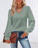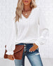SPECIFIKATIONER Top type: Bluser Stil: Elegant Materiale: 100% Polyester Lejlighed: Daglig, Ferie Halsudskæring: V-udskæring Mønstertype: Ensfarvet Ærmetype: Vidærmet Ærmelængde: Langærmet Pasform: Almindelig Sæson/årstid: Efterår, Vinter Detaljer: Pjusket Pakken inkluderer: Bluse STØRRELSESTABEL (cm) Størrelse Buste Længde Ærme...