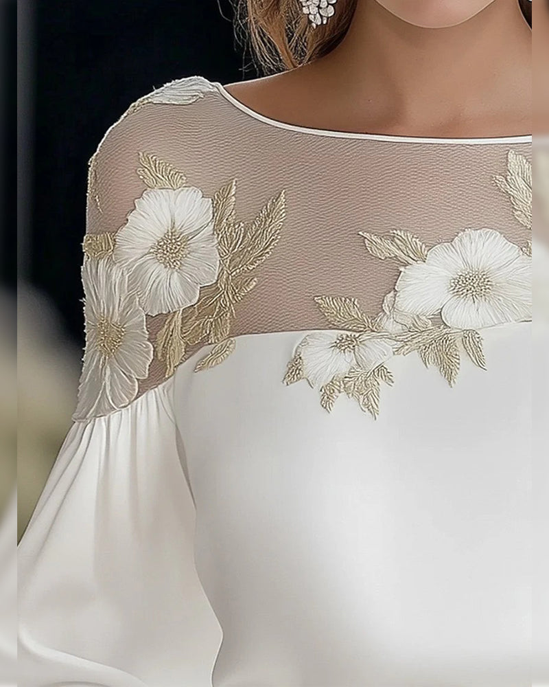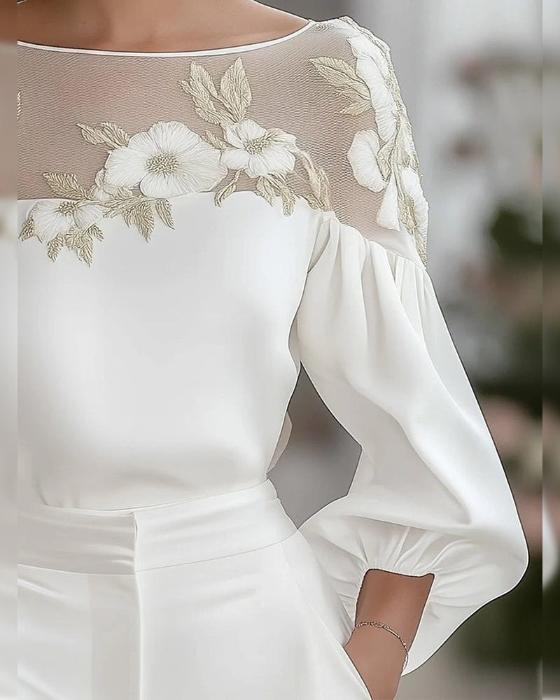 Bluse Ensfarvet Lapeler Blonder Patchwork