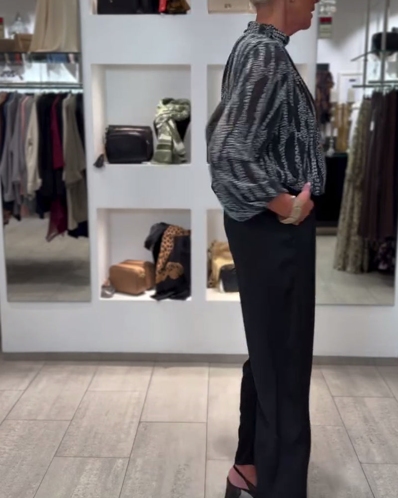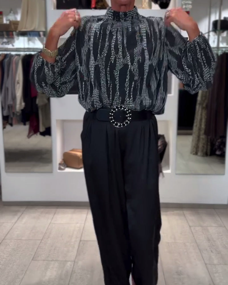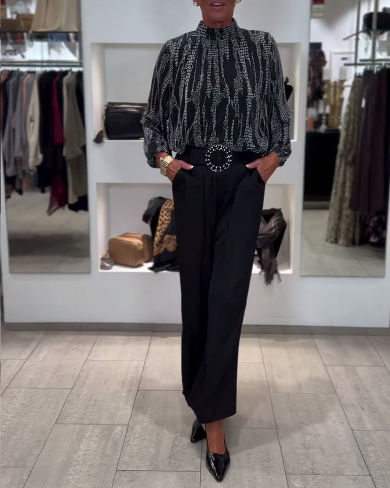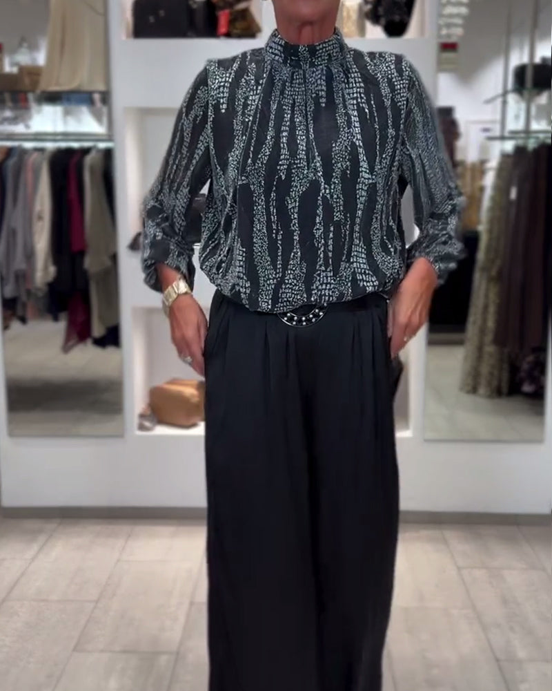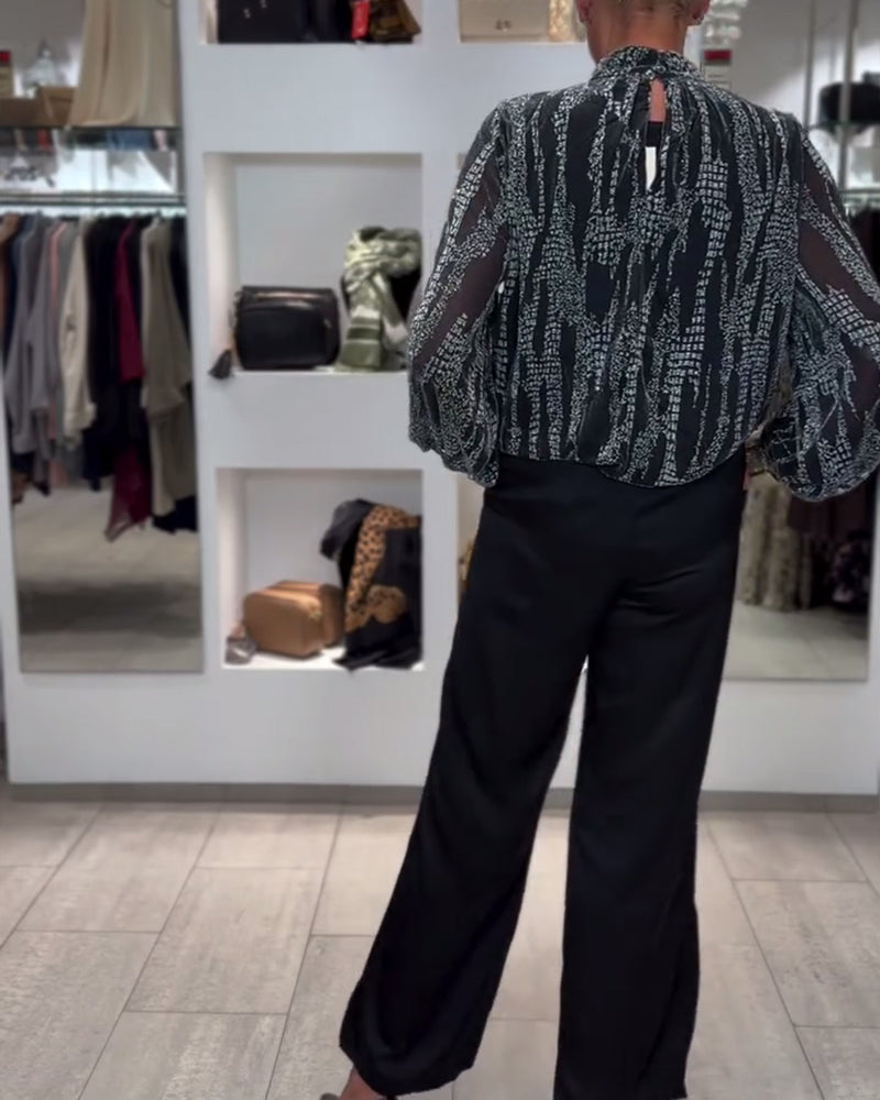 Bluse Med Lanterneærmer Pailletter Leopardprint