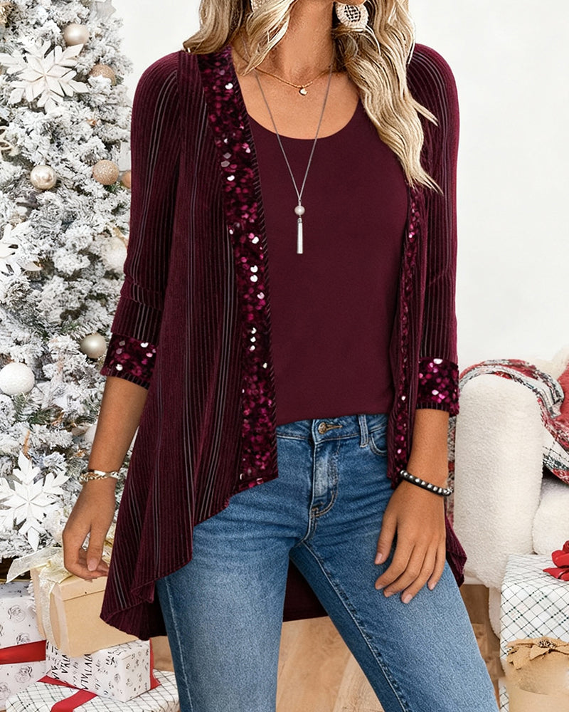 Printet Top Med Lange Ærmer Falsk Todelt Design