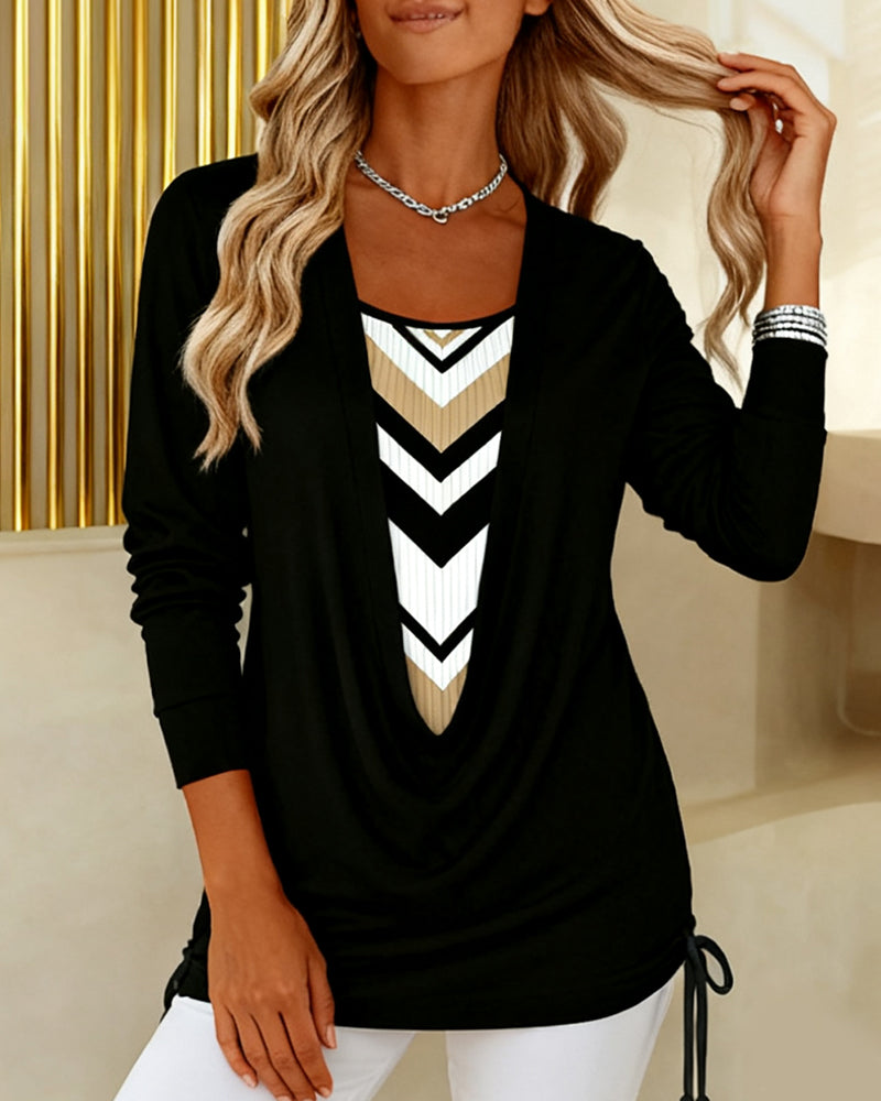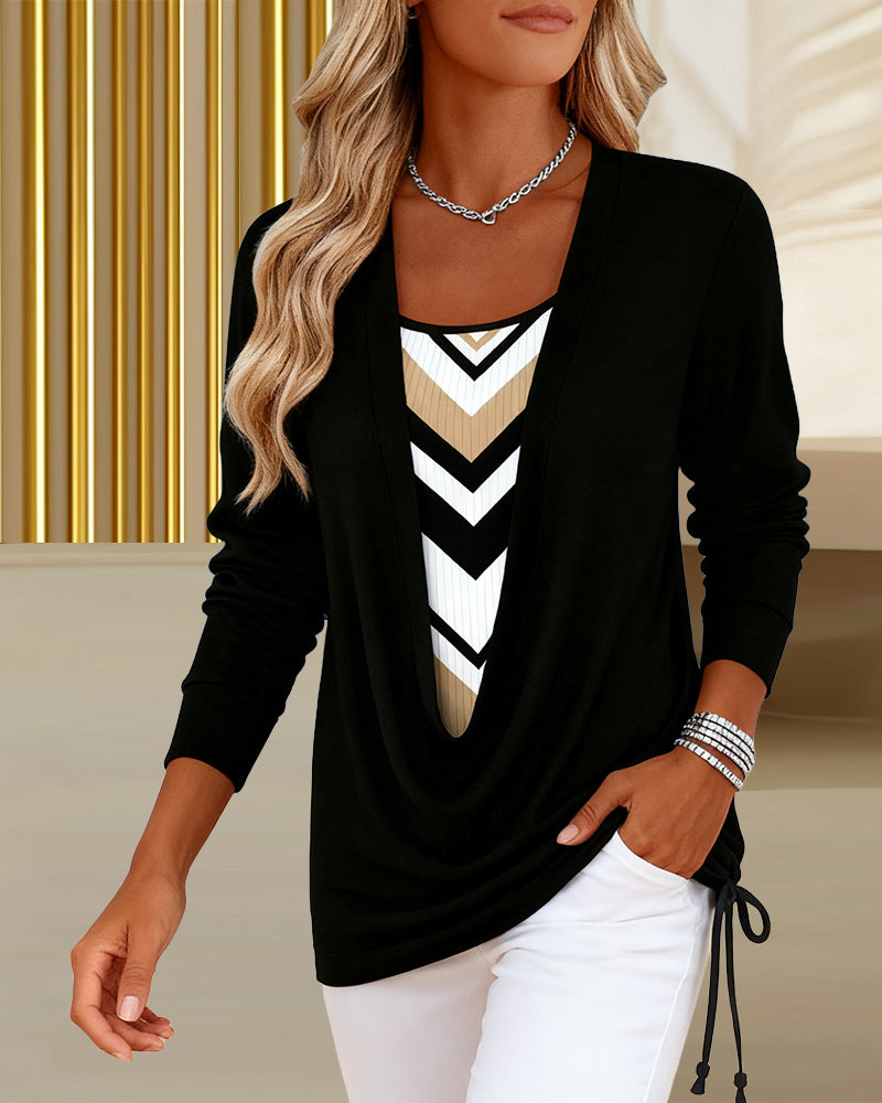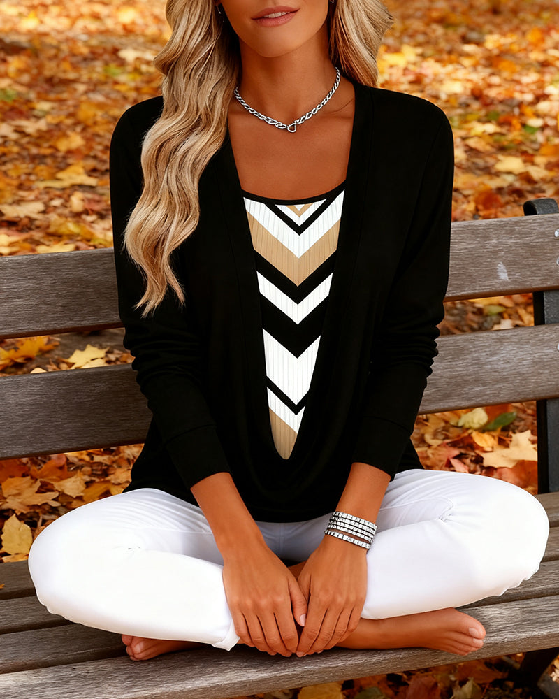 Printet Top Med Lange Ærmer Falsk Todelt Design