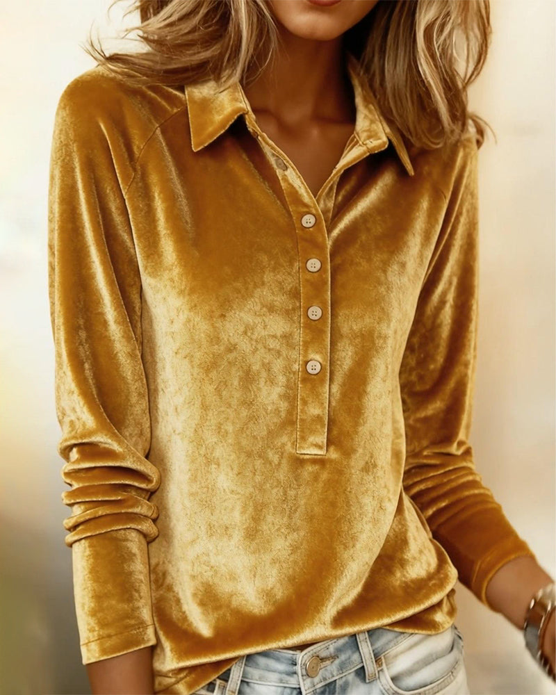 Skinnende Skjorte Med Revers Og Lange Ærmer