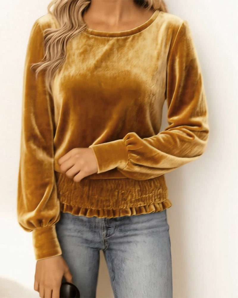 NYE Icon1 Top Rund Hals Rynket Fløjl Langærmed