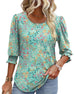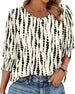 SPECIFIKATIONER Top type: Bluser Stil: Afslappet Materiale: Bomuldsblanding Lejlighed: Daglig Halsudskæring: Rund hals Mønstertype: Tryk Ærmetype: Lanterneærmet Ærmelængde: Trekvartærmet Pasform: Almindelig Sæson/årstid: Forår,Sommer Pakken inkluderer: 1 x Bluse STØRRELSESTABEL (cm) Størrelse Buste Længde S 96 69 M 100 70 L 106 71...