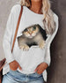 SPECIFIKATIONER Top type: T-shirt Stil: Afslappet Materiale: Polyester Lejlighed: Daglig Halsudskæring: Rund hals Mønstertype: Tryk Ærmetype: Almindeligt ærme Ærmelængde: Langærmet Pasform: Almindelig Sæson/årstid: Forår, Efterår Pakken inkluderer: T-shirt STØRRELSESTABEL (cm) Størrelse Buste Længde Ærmer S 96 64 58 M 100 65 59 L 1...