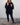 Afslappet sort bluse med nålestribet ryg