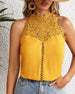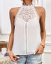 SPECIFIKATIONER Top type: Tank top Stil: Afslappet Materiale: Polyester Lejlighed: Daglig Halsudskæring: Halsstrop Mønstertype: Ensfarvet Ærmelængde: Uden ærmer Pasform: Almindelig Sæson/årstid: Forår,Sommer Detaljer: Udhulende,Snøre Pakken inkluderer: 1 x Tank top STØRRELSESTABEL (cm) Størrelse Buste Længde S 94 58 M 99 59 L 104 6...