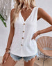 SPECIFIKATIONER Top type: Tank top Stil: Afslappet Materiale: Bomuldsblanding Lejlighed: Daglig Halsudskæring: V-udskæring Mønstertype: Ensfarvet Ærmelængde: Uden ærmer Pasform: Almindelig Sæson/årstid: Forår,Sommer Detaljer: Spænde,Udhulende Pakken inkluderer: 1 x Tank top STØRRELSESTABEL (cm) Størrelse Buste Længde S 92 68 M 96 69.5 ...