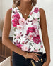 En Rundhalset Ærmeløst Bluse Med Rosenprint