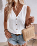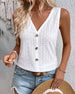 SPECIFIKATIONER Top type: Tank top Stil: Afslappet Materiale: Bomuldsblanding Lejlighed: Daglig Halsudskæring: V-udskæring Mønstertype: Ensfarvet Ærmelængde: Uden ærmer Pasform: Almindelig Sæson/årstid: Sommer Detaljer: Rynket Pakken inkluderer: 1 x Tank top STØRRELSESTABEL (cm) Størrelse Buste Længde S 97 65 M 101 66.5 L 105 68 XL 1...