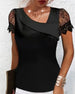 SPECIFIKATIONER Top type: T-shirt Stil: Afslappet Materiale: Bomuldsblanding,Snøre Lejlighed: Daglig Halsudskæring: Skrå Krave Mønstertype: Ensfarvet Ærmetype: Almindeligt ærme Ærmelængde: Kortærmet Pasform: Almindelig Sæson/årstid: Forår,Sommer Detaljer: Snøre Pakken inkluderer: 1 x T-shirt STØRRELSESTABEL (cm) Størrelse Buste Længde S 97...