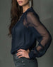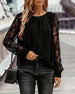 Bluse Halv-lås Mesh Langærmed